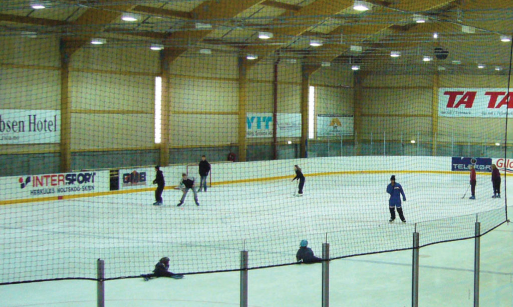 Den store isflaten kjøler ned bygningen, og luften i rommet behøver avfukting for å hindre høy relativ fuktighet og kondens på de kalde flatene.